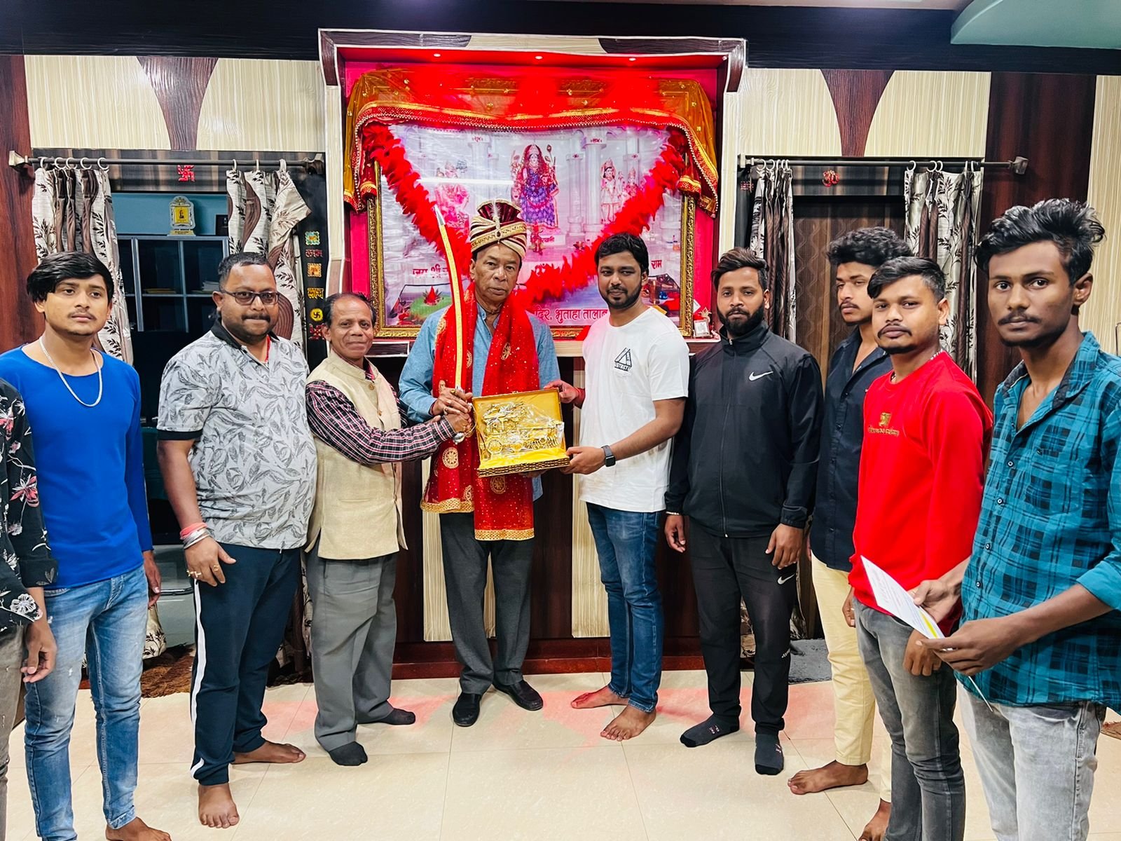 रांची | श्री चैती दुर्गा पूजा महासमिति भुताहा तलाब के मुख्य संरक्षक श्री किशोर साहू जी को मिलकर उन्हें मूमेंटो, अंगवस्त्र और तलवार दे कर सम्मानित किया, साथ ही महासमिति द्वारा आयोजित चैती दुर्गा पूजा महोत्सव में आंमत्रित किया।