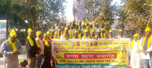 रांची। मोरहाबादी मैदान स्थित राष्ट्रपिता महात्मा गांधी के प्रतिमा के समक्ष झारखंड प्रदेश वैश्य मोर्चा के नवनियुक्त केंद्रीय पदाधिकारियों एवं सदस्यों को ने शपथ ग्रहण किया। केंद्रीय अध्यक्ष महेश्वर साहु ने सभी को शपथ ग्रहण कराया। शपथ लिया गया कि वे संगठन के प्रति निष्ठा रखेंगे और समाज के मुद्दों पर संघर्ष के लिए हमेशा तैयार रहेंगे। शपथ में यह भी कहा कि वे पार्टी से पहले समाज को प्राथमिकता देंगे। इसके बाद नवगठित केंद्रीय समिति की बैठक हुई। बैठक की अध्यक्षता केंद्रीय अध्यक्ष महेश्वर साहु एवं संचालन प्रधान महासचिव बीरेन्द्र कुमार ने किया। बैठक में चर्चा करते हुए कहा गया कि सामाजिक संगठन ही राज्य और समाज में बदलाव ला सकता है। सत्ता और सरकार के पास भले पावर रहती है। लेकिन संवेदना और संघर्ष की क्षमता सामाजिक नेताओं, संगठनों में ही होती है। बैठक में सर्वसम्मति से दो प्रस्ताव पारित किये गये। जिसमें राज्य सरकार द्वारा फिलहाल निकाय चुनाव स्थगित करने के निर्णय का स्वागत किया गया और ट्रिपल टेस्ट कराने और ओबीसी को 27% आरक्षण देने के साथ निकाय चुनाव कराने की मांग की गयी। दूसरे प्रस्ताव में विधानसभा से पारित ओबीसी को 27% आरक्षण देने का मामला को राज्य सरकार विधि सम्मत तरीके से आगे बढ़ाने की प्रक्रिया शुरू करे और पारदर्शिता के लिए हर प्रक्रिया एवं गतिविधि को सार्वजनिक करने की मांग की गयी। बैठक में मोर्चा की ओर से 1 दिसंबर से झंडा गाड़ो अभियान प्रारंभ किया जायेगा। जिसके तहत सबसे पहले केंद्रीय पदाधिकारी और सदस्य एवं जिला अध्यक्ष अपने घरों में वैश्य मोर्चा का झंडा लगायेंगे। 10 दिसंबर से पूरे राज्य में सदस्यता अभियान शुरू किया जायेगा। इसकी शुरूआत रांची से की जायेगी, इसके अलावा अन्य कार्यक्रमों की घोषणा की गयी। कार्यक्रम में रेखा मंडल, हीरानाथ साहु, मोहन साव, रामसेवक प्रसाद, अश्विनी कुमार साहु, डॉ. माधवचंद्र मंडल, योगेन्द्र प्रसाद, लक्ष्मण साहु, प्रमोद चौधरी, परशुराम प्रसाद, सहदेव चौधरी, इंदुभूषण गुप्ता, कपिल प्रसाद साहु, हरिनाथ साहु, दिनेश्वर मंडल, शिवनंदन प्रसाद, गुड्डू साहा, राजीव कुमार, अनिल वैश्य, राजधाम साहु, लगनू साहु, सत्यनारायण प्रसाद, नरेश साव, श्रवण प्रसाद साहु, हलधर साहु, रेणू देवी, नम्रता सोनी, पूनम जायसवाल, आत्माराम चौधरी तथा रवीन्द्र कुमार आदि उपस्थित थे।