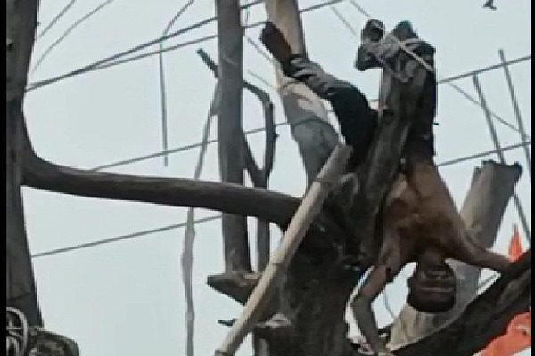 झरिया | पेड़ पर चढ़ा एक युवक अचानक चीखने-चिल्लाने लगा। लोगों की नजर जब उस पर पड़ी तो सबके होश उड़ गये। युवक के शरीर में आग लगी हुई थी। वह झुलस रहा था। पेड़ पर उल्टा फंस गया था। पेड़ भी जलने लगा था। दरअसल, वह एक 11 हजार वोल्ट के करंट प्रवाहित बिजली की हाईटेंशन तार की चपेट में आ गया था। आसपास से जुटे लोगों ने उस शख्स को बांस-बल्ली की मदद से पेड़ से नीचे उतारा और पास के अस्पताल ले गये। झुलसे शख्स का नाम चिमटी बताया गया। झुलसे चिमटी की हालत देखते हुए उसे एसएनएमएमसीएच रेफर कर दिया गया। उसकी हालत गंभीर बताई जा रही है। घटना झरिया थाना क्षेत्र के गौशाला मोड़ के पास की है।